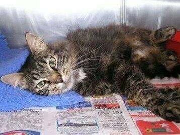 Approx 9yrs young, Trey is a super affectionate DLH who loves nothing more than to give headbutts, & drool while he purrs like a freight train (while kneading the air with his paws). He has a deformed front leg after an injury early in life, but this does not stop him from getting around & onto furniture. He has come back to us (we first found him a home in 2007) after his owner has unfortunately become too ill to look after him.