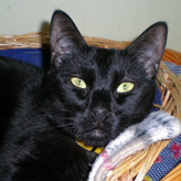 William has a sleek, athletic body and shiny black coat. He's a very handsome boy with a most unusual face that looks like he really is descended from an exotic egyptian pyramid cat. William would be ideally suited to a single person and would be best as an indoors/outdoors cat. Pound no. 249 listed 17th october 2008