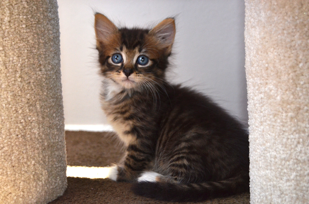 Mickey loves exploring and has a adventurous streak! He would ideally be suited for a family with an existing cat or small dog with whom he can play. Mickey is fairly confident and can hold his own in new environments. He hasn't met dogs yet but we don't think he would be intimidated. He is currently in foster care with his litter mates and two adult cats.