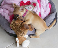 Gracie and her mum found themselves in dire circumstances but luck was on their side when they were rescued by two very kind ladies who asked if we would take Gracie and rehome her. Gracie is a tiny little puppy with a huge personality that is great with other dogs, cats and older children. Gracie has picked up house training like a star and goes outside to toilet but if she can't make it she use her puppy pads. Gracie is such a good girl and sleeps all night through in her little bed but during the day her favourite thing is playing with her toys or chewing on her chew toys. It is important she has those so that she doesn't chew on chair legs or anything that she can get her mouth around, including your fingers, feet or around your ankles! Due to her size, Gracie requires an extremely secure home with access to outdoors for toileting. We will only rehome Gracie with a family who have another small, playful dog that she will bond with and will not rehome her as an only dog. Gracie has a low maintenance coat that will require a bath and regular brushing to keep her tidy.
