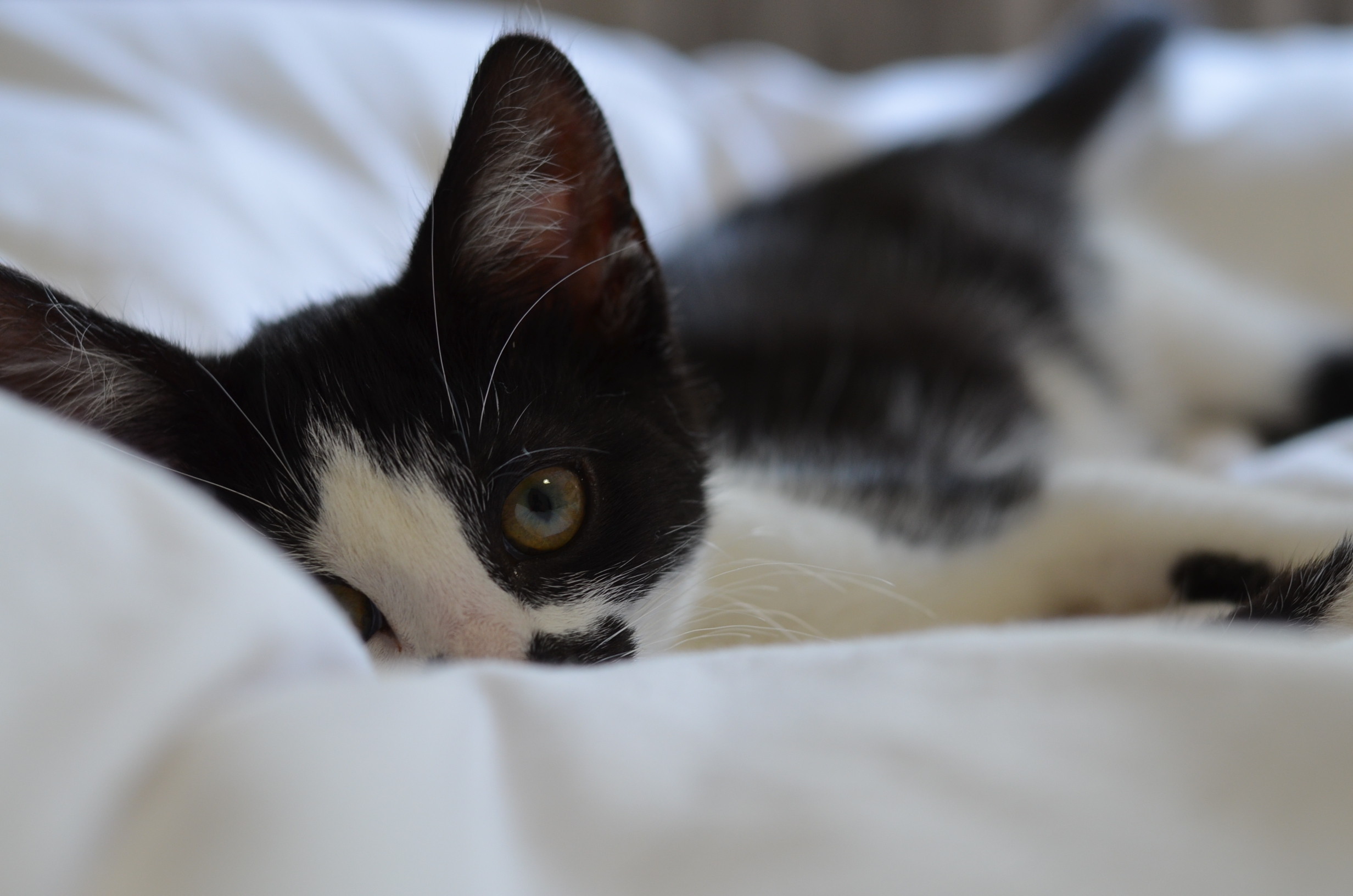 When it's time to retire to bed and you're reading, glance over at her... she will be staring at you (refer photo number 5). As you drift off to sleep and wonder why you're finding it difficult to turn over - she's probably made herself comfortable between your legs - seems to be her favourite spot at the minute!