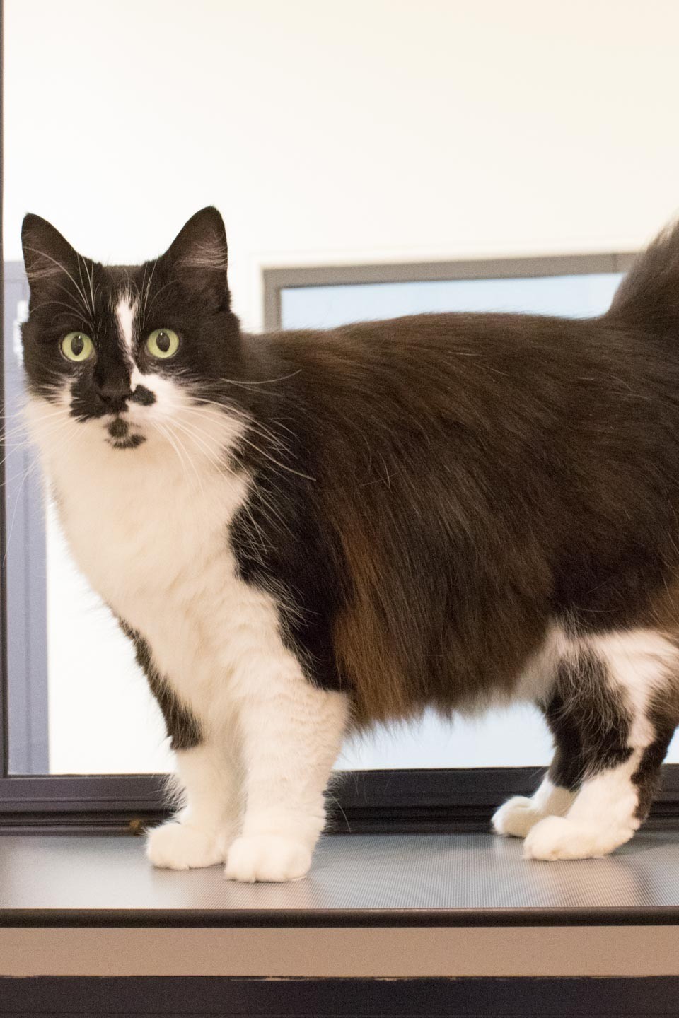 Hello my name is Maca. I am an affectionate older girl in need of a new home.I was surrendered to the shelter as my owner was not able to care for me anymore. I am a very gentle cat that loves to laze about all day. I really enjoy the company of my human friends and become very smoochy when shown affection. I am not very interested in lots of toys and much rather prefer pats on my head.I would prefer to be the only feline in the home but one other sociable cat friend may be okay.I am litter trained and currently being fed Hills Science Diet light biscuits (as I quite like my food!) which I really enjoy. As you can see I have a medium coat of hair which will need to be brushed regularly to ensure I don't leave hair all over your furniture. If you think I am the 'purrfect' kitty for you please come and meet me.