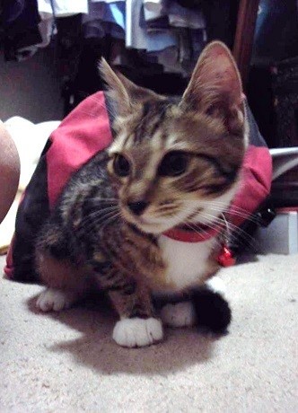 Still very much a kitten, Phoebe is playful and adventurous and is really coming out of her shell. She can climb to high places, so if you can’t find her – look on the top shelf in your closet – she just might be there having a snooze before nap time.