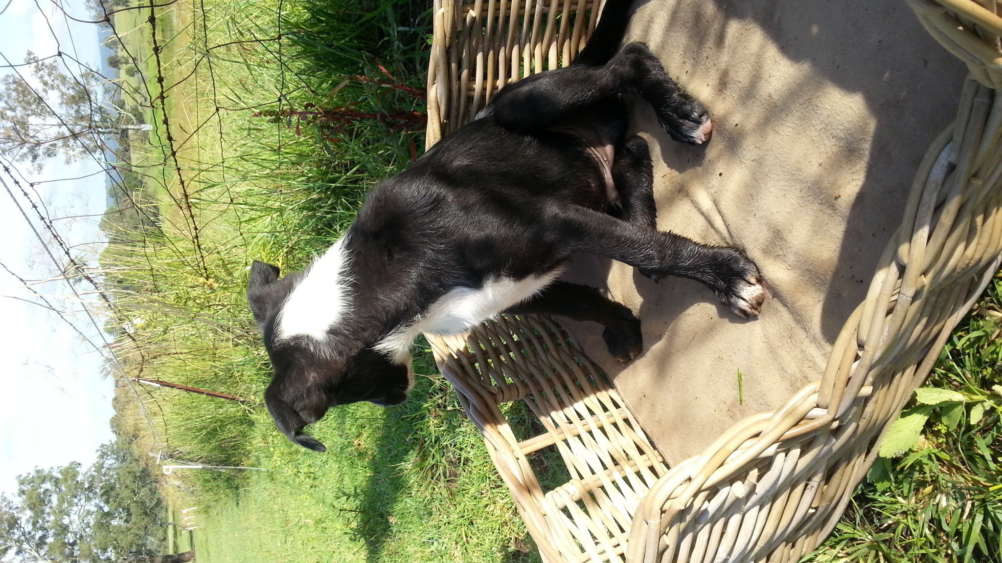 He is mostly black, with distinctive white markings around his face, neck and chest.