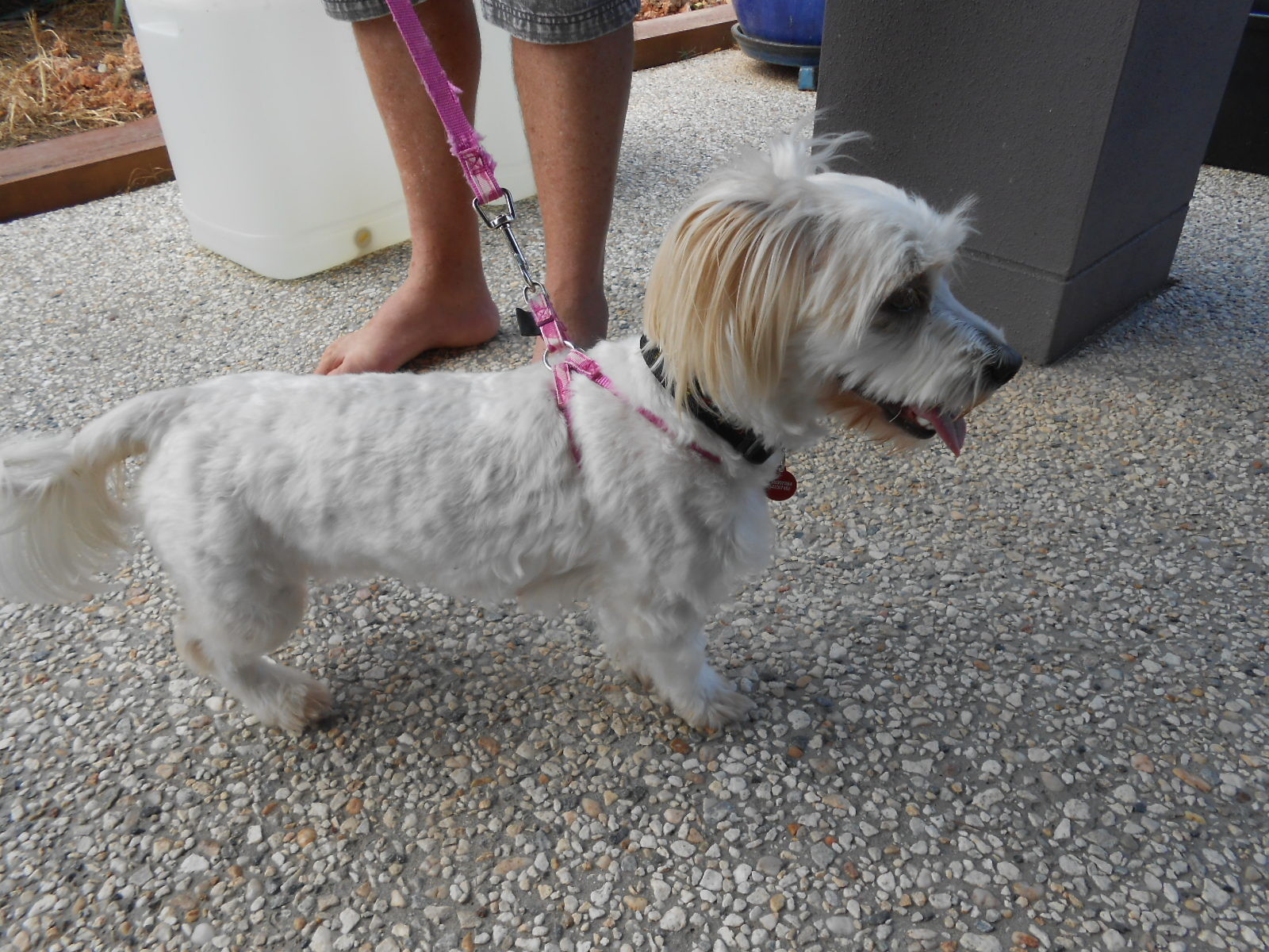 Evie is a 22 month old Llasa Apso x matlese desexed female. She is a real livewire, is affectionate and does need company as she doesn't like to be left alone. She plays well with other dogs and has come to an agreement with the cat.