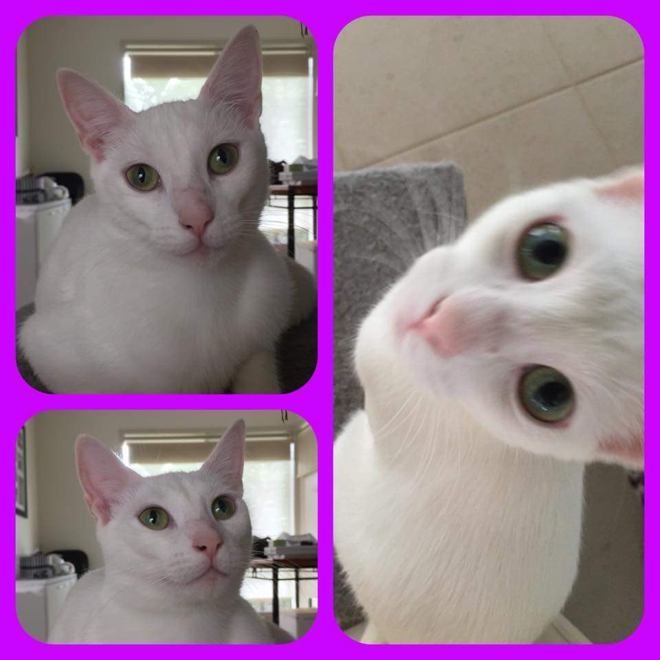 Note: Petal must go to a home where she can be kept INDOORS ONLY as she is pure white with pink features, putting her at very high risk of sun damage.