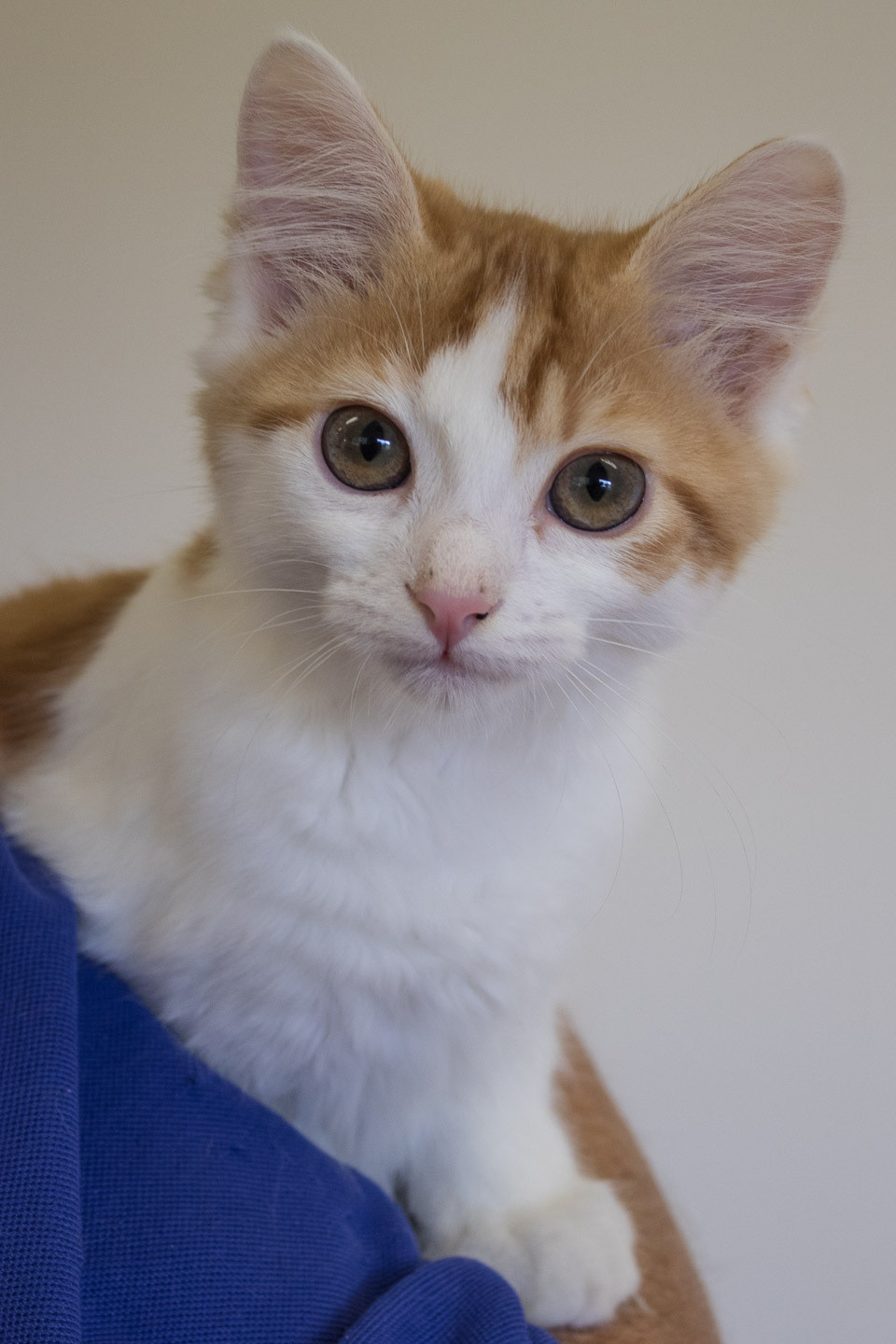 Meet cute little Gemma! She and her littermate Shy Guy are awaiting new loving homes. Gemma needs to be kept INDOORS to prevent sunburn to her pale nose.Like all pets kittens have some basic needs. Start out by giving your new kitten the same type of food it has previously been eating. Make sure that your kitten always has fresh water available to drink. If you wish to purchase a kitten there are some basic things you need:A good quality kitten dietFresh water available at all timesA soft bristled brushA soft bedA litter boxThe first few weeks in a kitten's new home are the most important ones in terms of socialising and bonding with a human. One important caution is don't let your kitten start to associate your hands with a play toy. Doing so can develop into bad habits of scratching and biting fingers. Hands are for holding stroking and gentle hugs. Toys are for rough play.Be sure to praise them profusely for being a good kitten.*INDOORS ONLY
