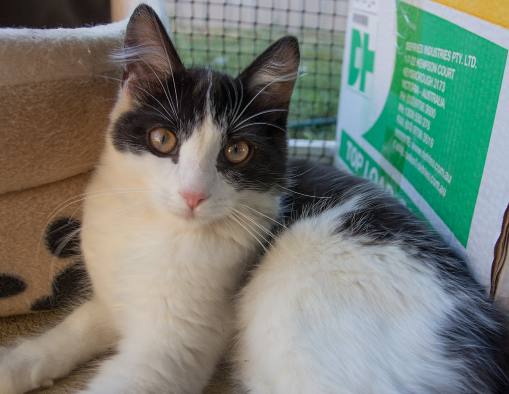 Sage is a very affectionate and people oriented kitten. She loves to play and keep you entertained. She also loves a cuddle, and purrs and snuggles in to you. She is litter trained and is just an easy going, loveable little girl who is going to grown up into a great cat.