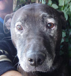 Shadow looks like an old dog but is not really. She just has grey flecks and markings on her chocolate brown coat. However she may just have turned grey from looking after the litter of puppies she has obviously had!