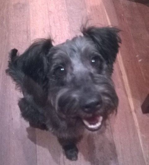 Calvin is what is known as a "Schnoodle" (Poodle x Miniature Schnauzer).He is a very loving,cuddly boy who adores everyone including children.He is a playful and active dog with a fun outgoing personality.He is in the prime of his life and likes to run,run,run,then chase a tennis ball or stick and really likes the beach or river for swims.
