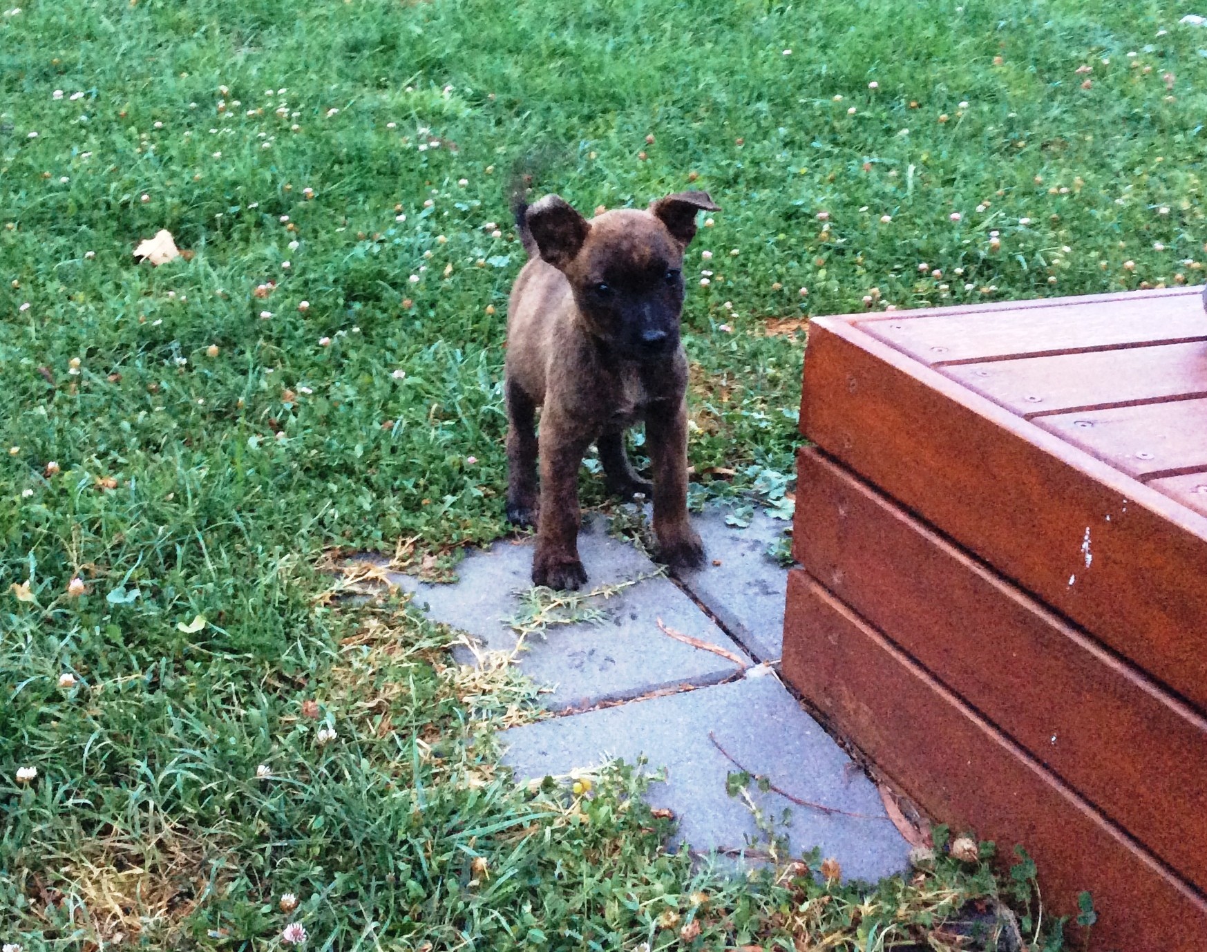 Sapphire is a cheeky little girl that loves people and getting cuddles, if you are not paying attention to you she will either play tug with your pants or woof at you. Sapphire is part of a litter of 4 and although she is quite a bit smaller than her siblings she is confident enough to tell them when they are being too rough. Sapphire is always one of the first to explore new things and picked up really quick the lead training and walks confidently right from the start. Sapphire is learning meal time manners and other basic obedience exercises. Sapphire attends puppy classes and her new home requires to continue the training with her to ensure she remains a happy social little girl. Sapphire would be happy in a home as an only dog or as a second older dog and also wants to be made part of the family