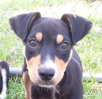 Max has beautiful black, tan and white markings with a unique round tan dot on one ear. He has a lovely expressive face and appears to wrinkle his forehead when he is concentrating.