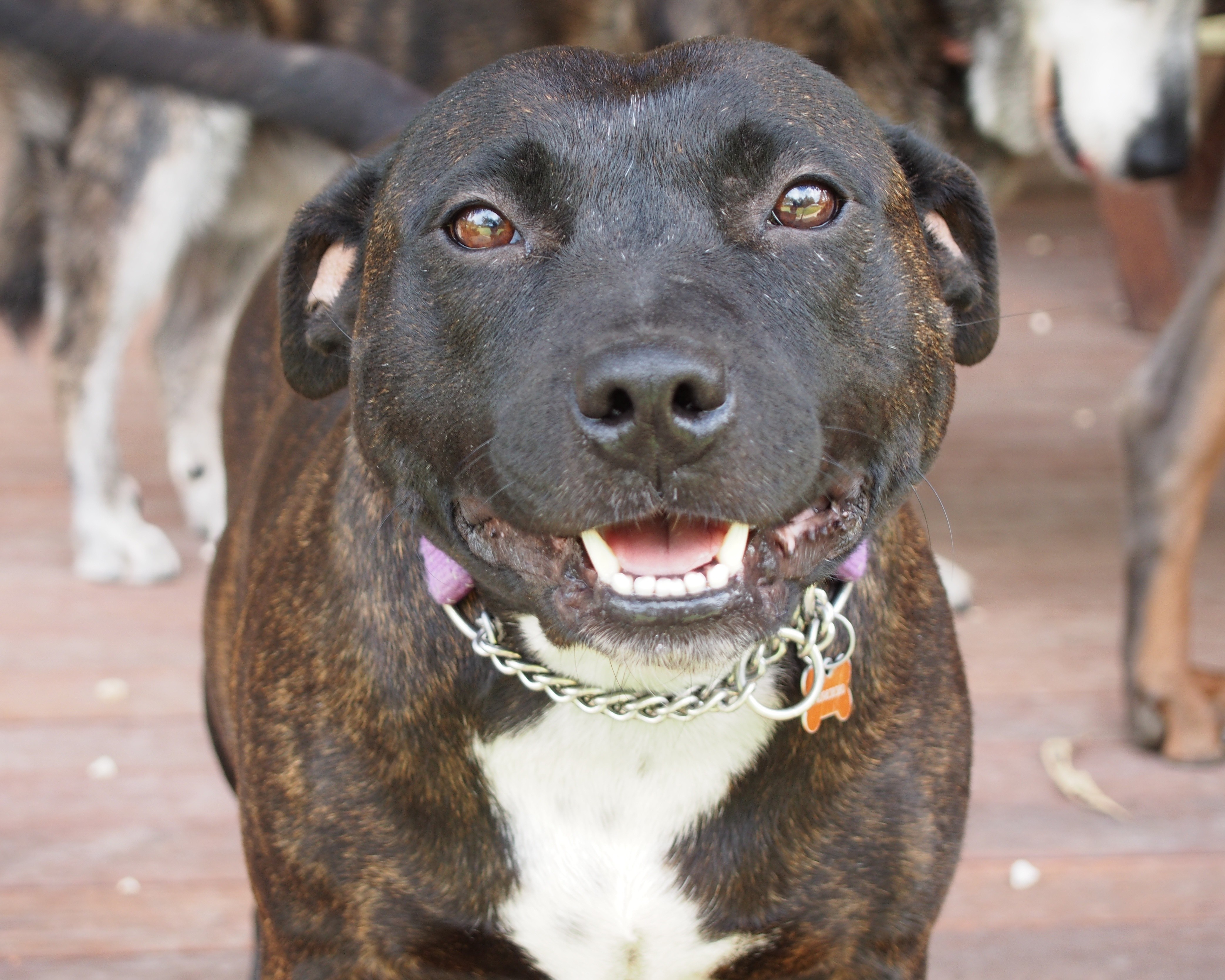 Angel is everything staffy lovers love about staffies. She loves people, is energetic and fun, well behaved, walks well on a lead, has great recall and loves to snuggle. She is currently being fostered with other dogs but can be choosy about her fur pals. Not suited to a home with cats, pocket pets or small dogs. Angel would prefer someone who is home a lot or a larger but submissive playmate.