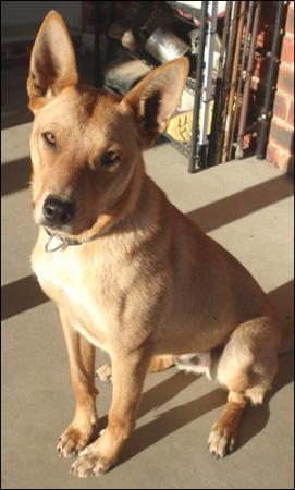 Schnappy chops was born into rescue a few years ago and his owner is now a foster carer for adr. Unfortunately she is moving and will not be able to take her beloved dog with her. Schnapps is a gorgeous boy, people often say he looks like a dingo and he certainly does. Even some of his characteristics and behaviour suggest he has dingo in him and if you have a dingo you will know what i mean as soon as you see him. However the only thing known is that his mum was a red heeler cross. Whatever he has in him, he is the most affectionate dog ever. You can pick him up no worries and if you sit down he will sit on your knee, he absolutely loves people and cuddles! he has basic obedience and will sit when told and for meals etc, this will need to be continued to ensure he always uses his manners. Schnappy is very well socialised with other dogs and puppies, and is fine with chooks and ducks. You will need good fencing if you wish to have schnappy as a companion, he is a very clever boy and without proper fencing he will get out and see what's going on on the other side of the fence. Since he has grown up with many other dogs, i think he would be happiest somewhere with a bit of room and another dog for a companion. He is a very athletic boy, and if you want a dog for running with each day then he is definitely your boy!