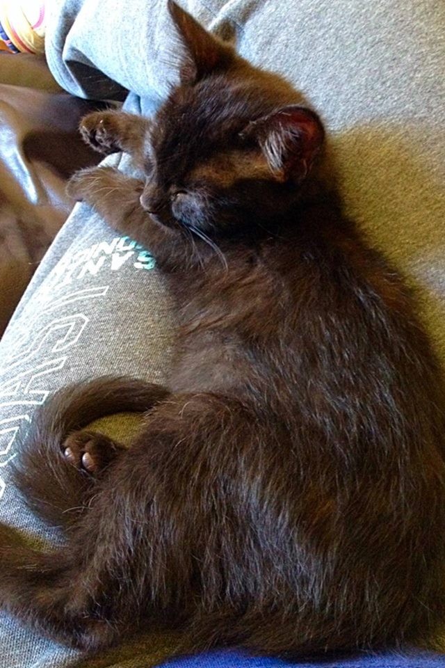 Kol is a happy go lucky boy who is extremely tolerant of dogs. He sleeps along side any of my dogs and fosters. He likes to play, climbing and exploring and is happy doing his own thing and flops in your arms when picked up. He happily lives in a dog and multi-cat household. Kol was bottle fed from four weeks old.