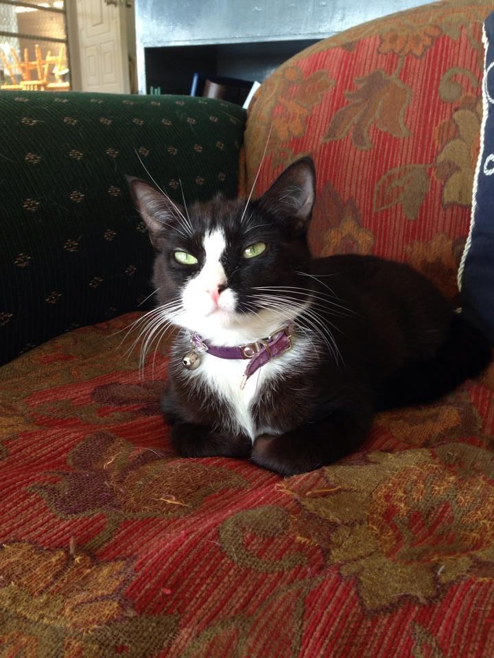 Don't let the grumpy look in the photo put you off. Bull is one affectionate girl. Cat and dog friendly. She is also good with children of all ages. She is mother to the black cat on here "Elly" so it would be amazing if they could go together but it's not essential.