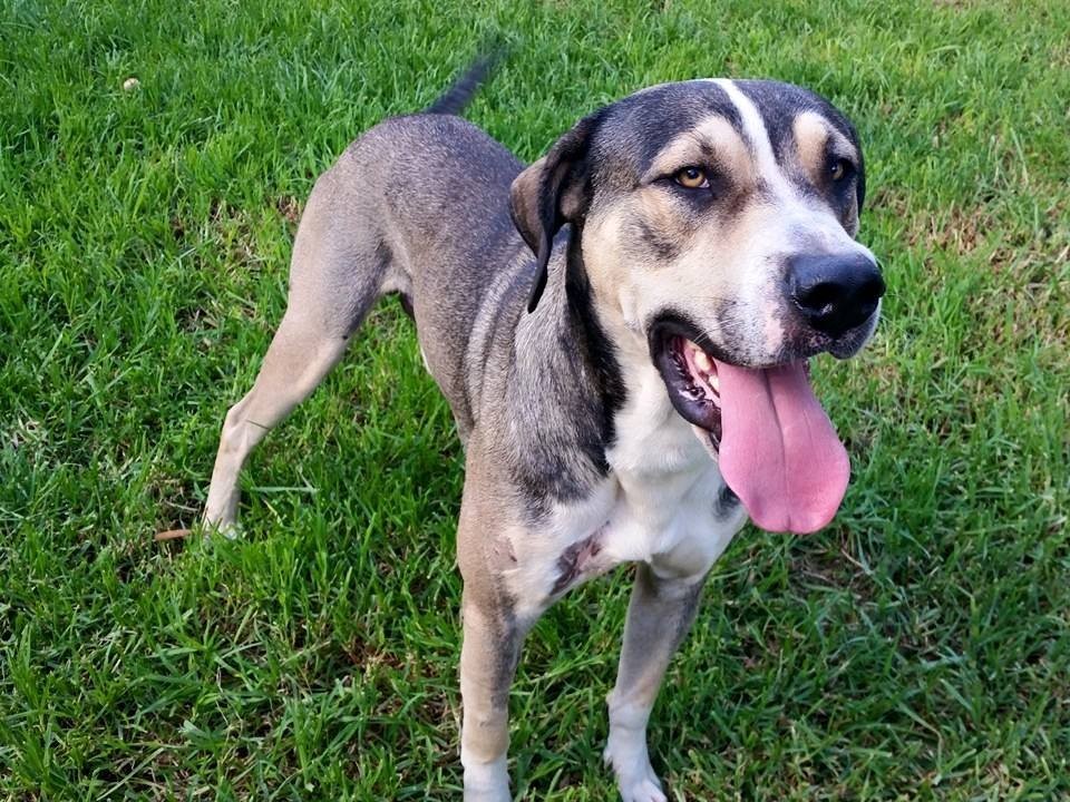 Here's big Bazza... about 1.5yrs old this big boy is a dane mastiff X he is a social boy that's been great with other dogs and is very affectionate. Bazza is desexed has a microchip is vaccinated and ready to find a furever family. He is great with birds not batting an eye lid when hi carers bird is out of her cage and just wants to be loved.