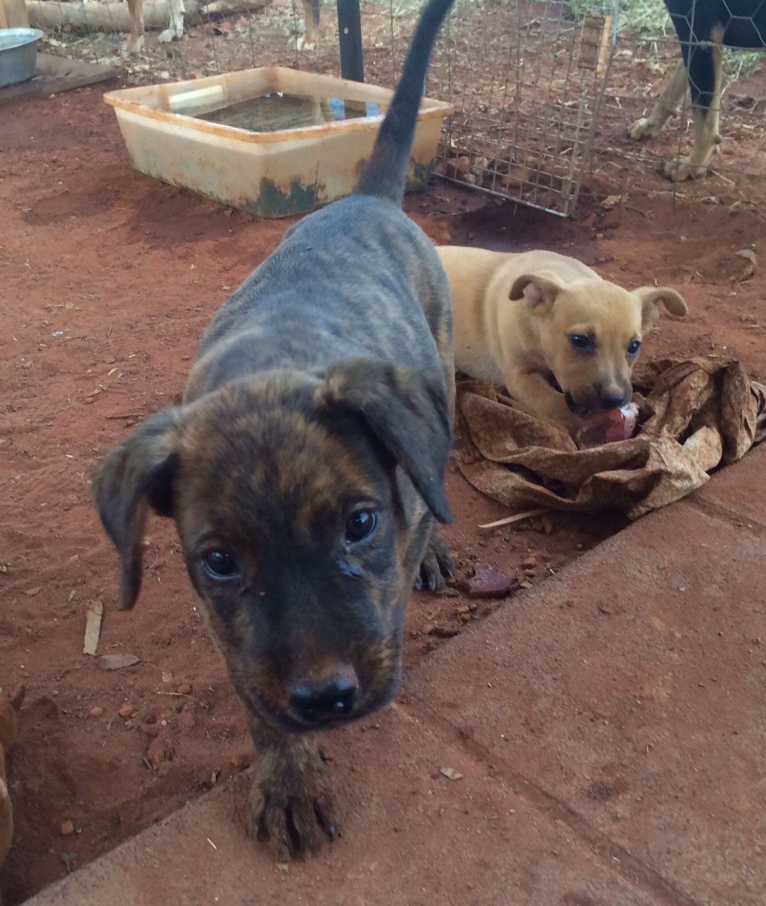 We can't guarantee in any way what breed she is just make a guess. After asking the vet to look at photos we are guessing staffy cross perhaps with a cattledog???