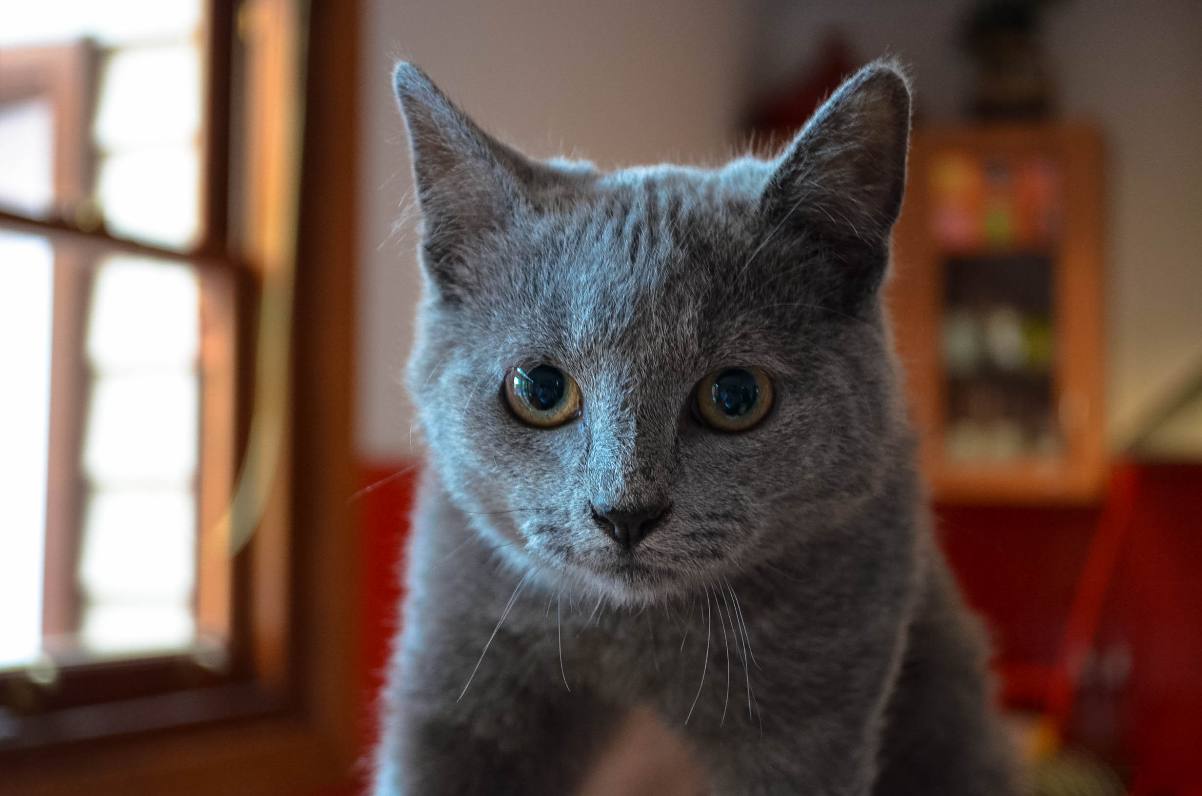 Oh Hi. I am a plushy grey boy. I love to get pats and will stare at