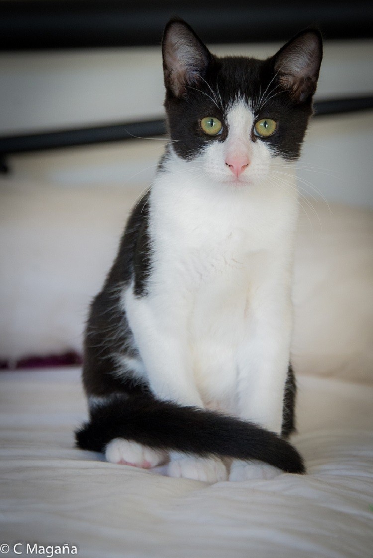 Paddy is a very gentle little kitten who is shy to start with but gradually learns to trust. He had a difficult start in life, being found when he was about 6 weeks old, and so is gradually learning to respond to human company. Paddy was adopted by his step Mum Zena, who he is very bonded to and they are often seen curled up sleeping together. Paddy has fitted well into the family playing with his step-siblings, while chasing balls and playing with toys and he will also give you a wash if he is inclined.