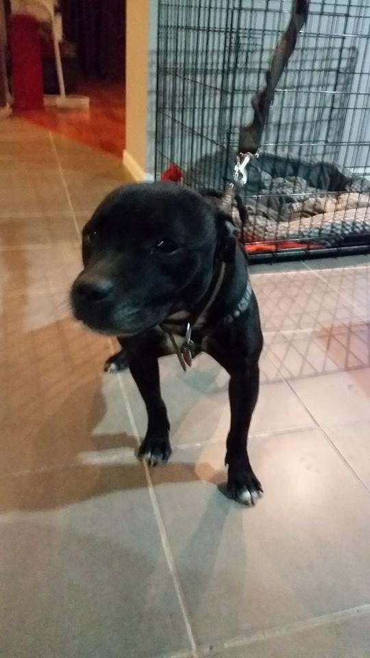 beautiful little girl who is just a pleasure to have a round good with children and dog friendly once she calms down is very affectionate and loving little girl she is on the smaller side of English Stafford knows sit and few basic commands walks ok on the lead needs some loving and attention sadly her owners never had time for her so she just sat in a back yard and was left alone she will need hi fences and preferably some 1 that can spend some time with her she will be loyal and love you to bits if you think Sasha can be your new best friend give all over staffy rescue a call or shoot us an email