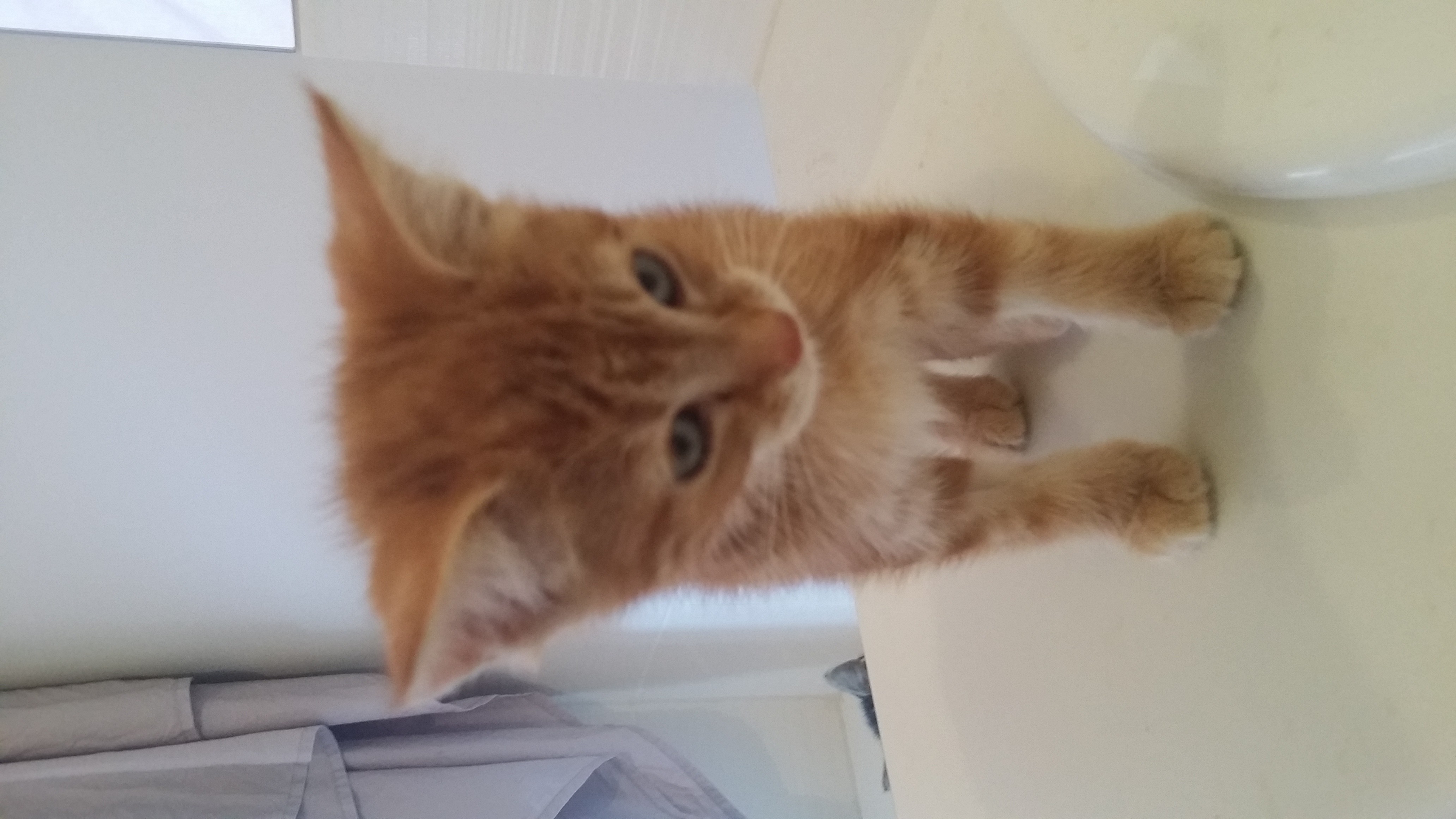 He gets along famously with the other foster kittens. He has no problem sharing his personal space with the other fosters, and is often found snuggling up to one during nap time.