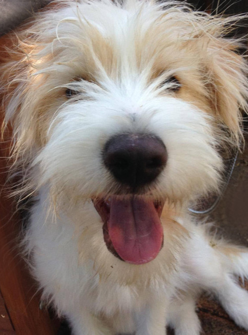 She is the cutest dog and her caramel and white coat is really soft - not wiry at all.