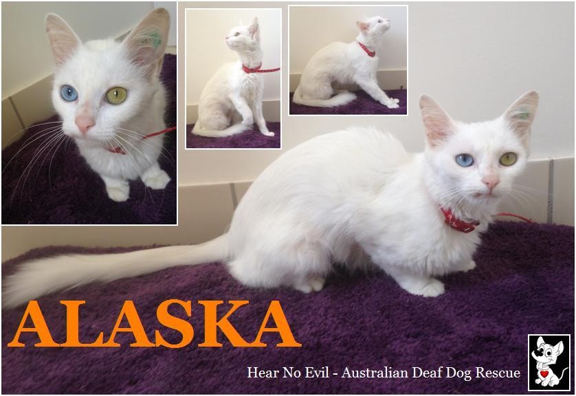Alaska is what we call an 'Honorary Canine' - which means we know she's a Cat, but since she's Deaf and she needed help, we took her in.
