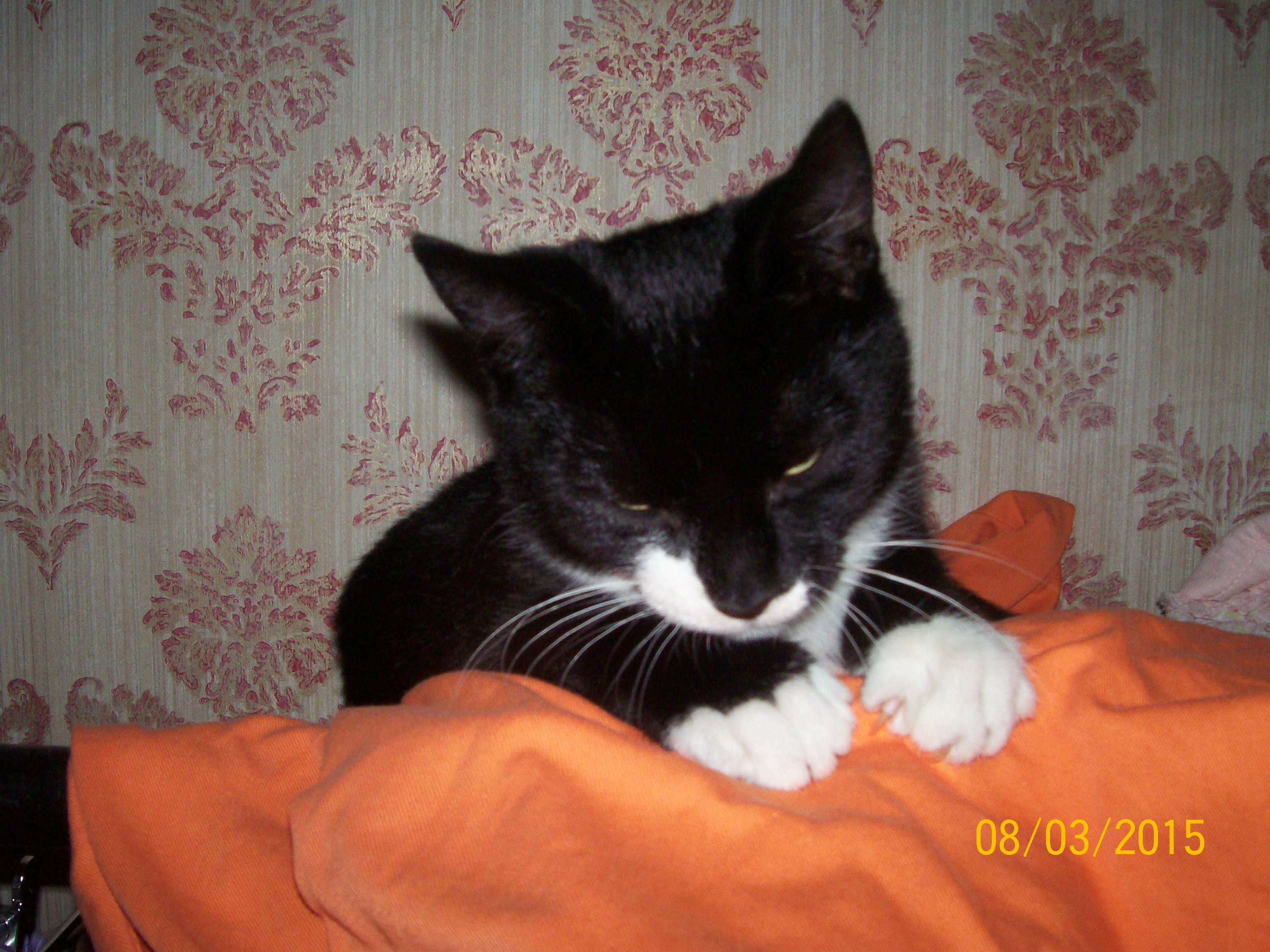 Brock the handsome black and white tuxedo markings boy has a glossy, minky coat and is so cuddly. His nickname is Brocky Bear. He's a sensitive, friendly and smoochy boy who likes people and is quite fond of being patted and cuddled. He comes when you call him, running on his cute, short little legs, little meows as he does so. He is such a loving, affectionate, warm natured little man.