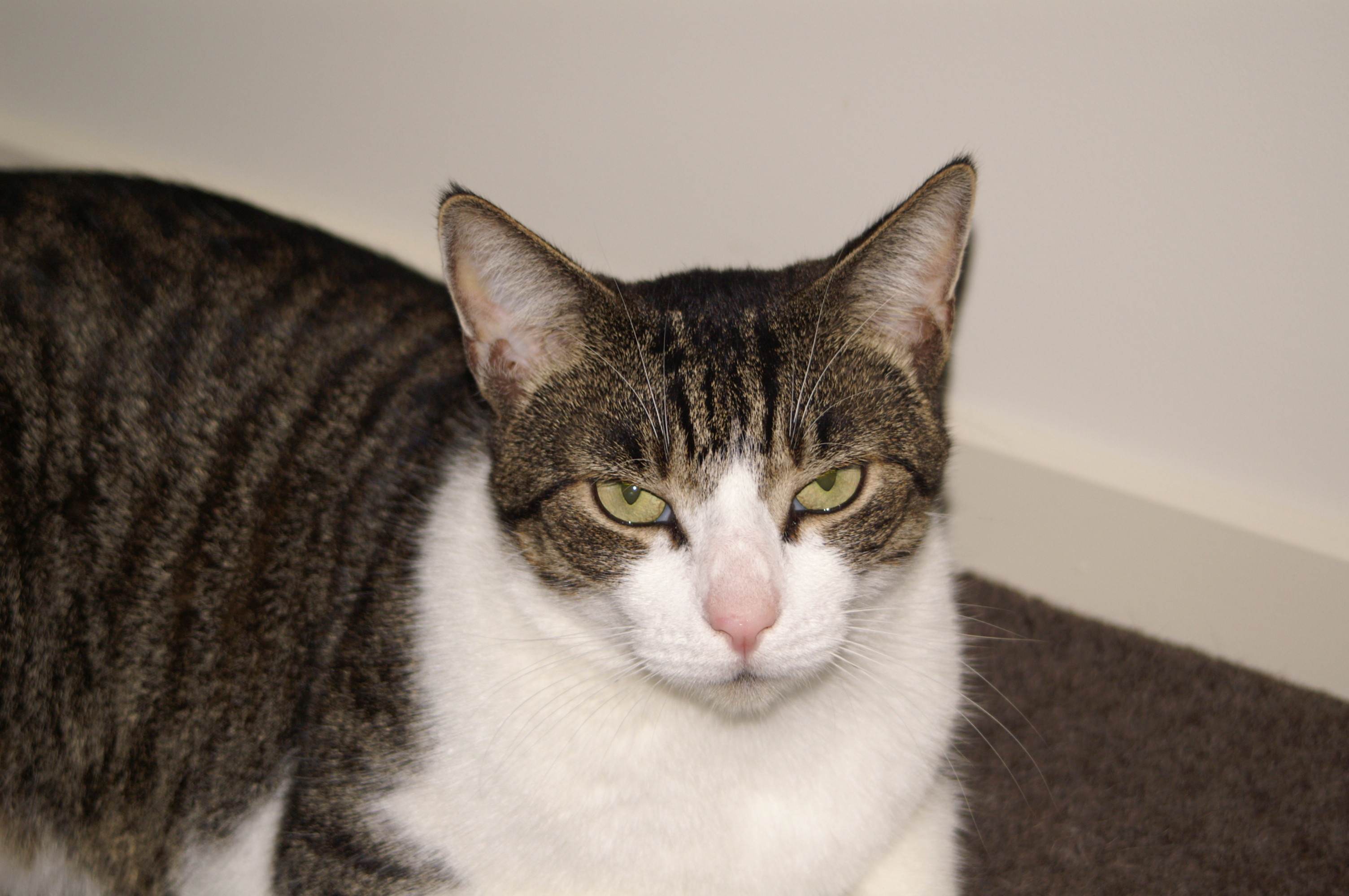 Pepper is a good natured girl. She would be OK with a quiet dog and a laid back cat and a loving home. Pepper is happy to be patted and would be an excellent companion cat.