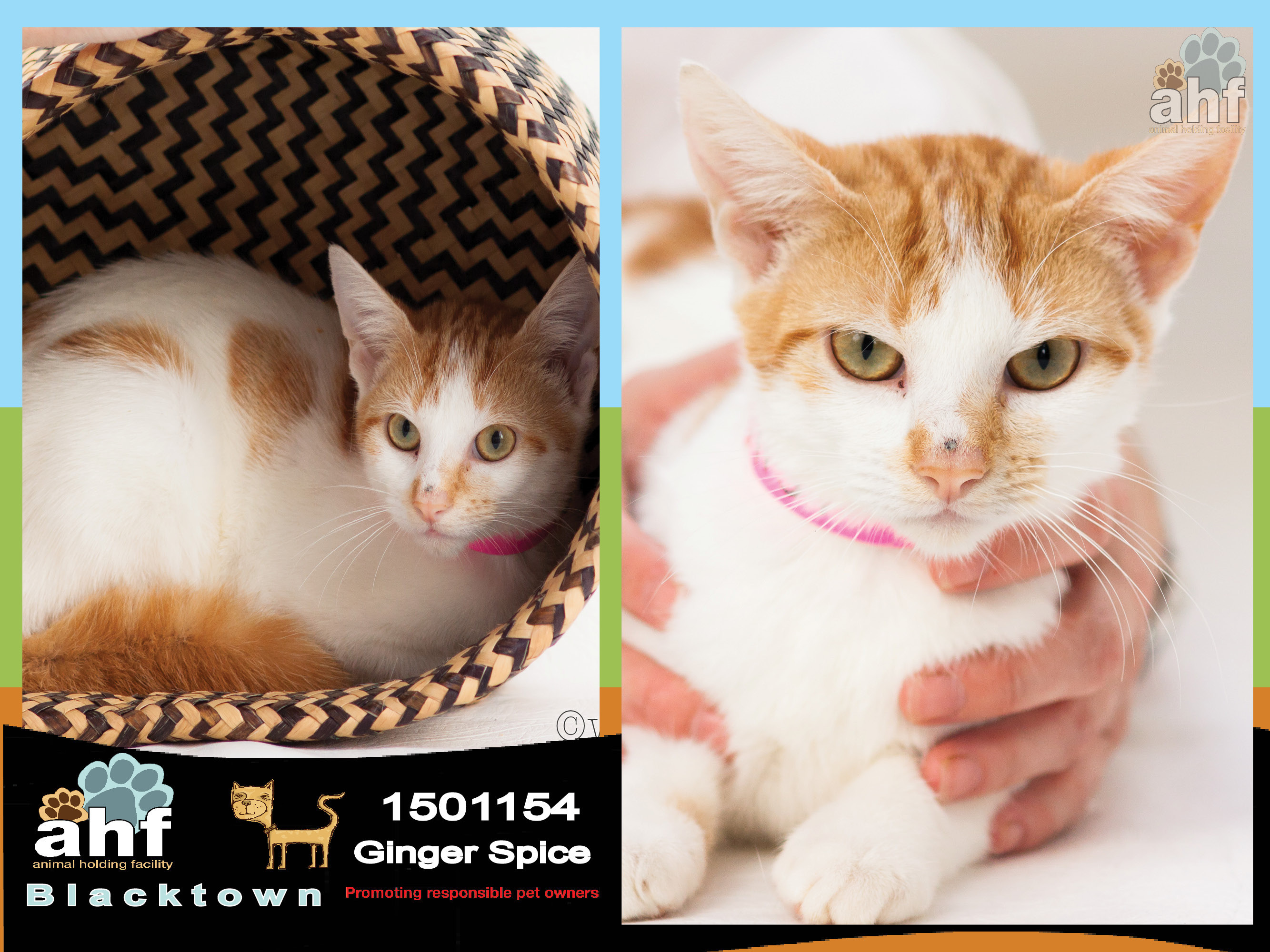 Ginger Spice is available immediately for adoption as she has completed her mandatory holding time.