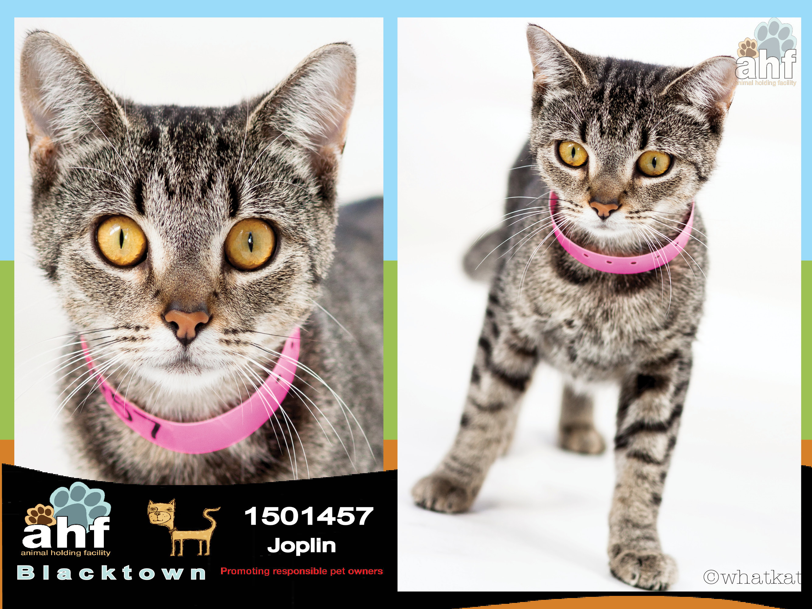 Joplin has the most amazing golden amber eyes and stunning silver tabby coat. She is young, playful, inquisitive and affectionate. Joplin would like a home of her own.