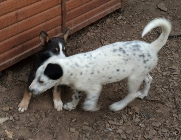 Fabian, Fannie, and Farren are members of the F-team. They are border collie,kelpie cross pups who were rescued from a farmer. He was going to knock them on the head at 4 weeks of age. I am not sure why anyone would continue to allow their bitch to get pregnant year in and year out without desexing her especially as he did not want to keep a pup for himself. Then he lets them live until they are four weeks old, then takes them away from her. One of our volunteers rescued them in time and cared for them until they were old enough to come to Happy Paws Haven to be vaccinated etc.