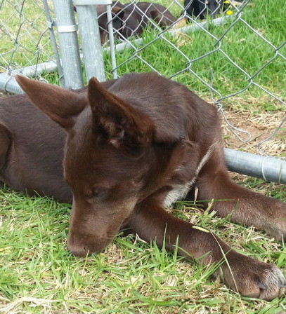 Robbie has the alert, trainable characteristics of a typical kelpie. He has discovered treats and will try so hard to figure out what you are asking him to do, so he can have one. It is VERY cute.