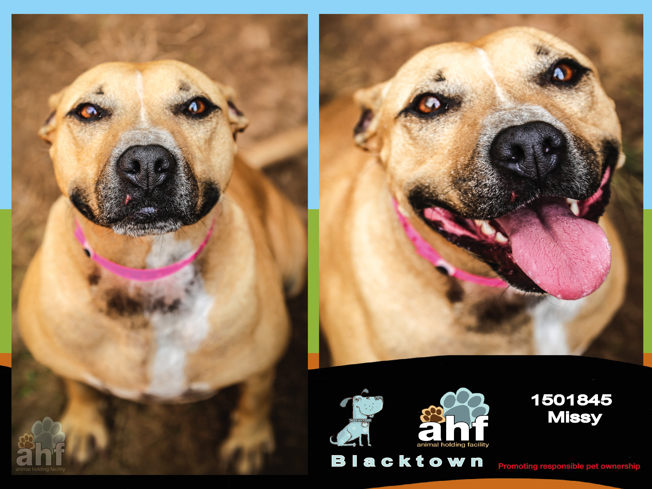 If you already have a dog and wish to adopt Missy we urge you to visit the facility with your dog for a 'Meet and Greet' to ensure that they are compatible.