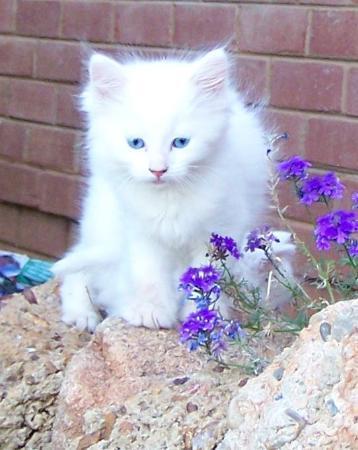Frosty is a fluffy little snow cat! he is a delightful little kittens that is litter trained. He wil make a lovely house pet and is used to being housed with other cats