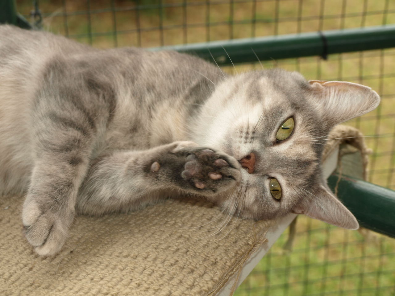Nevaeh, is the most gentle puss, she is only young still with lots of love to give. Just loves to be patted and chin and face rubs give her so much delight, she purrs away. Nevaeh loves to be paid attention too and have a nurse. Nevaeh is in care with other cats and very submisive, she is very attentive to the young kittens that are in care with her, helping with cleaning and socialising them. Currently in care with young children and is fine with them. Nevaeh has quite a passion on one of the large dogs she is in care with, she loves to smooch her and be around her, so would be very suitable to a home with a gentle dog. Nevaeh was a very young Mum left behind by her owners when they moved out and left her to defend for herself and young kittens on her own. Concerned neighbours handed her into the vets, the vets kept her kittens for their Adoption program. Hearing her plight, rescue gave Nevaeh her chance to be happy to. Hense Nevaeh is heaven spelt backwards and she wasn't ready to go there yet. After 8 days in the pound Nevaeh joined rescue.She is now desexed and starting to enjoy life, she is an indoors cat now but does get time in the sun in a safe outdoor enclosure. Nevaeh would suit most families, she is pretty cruisey cat.
