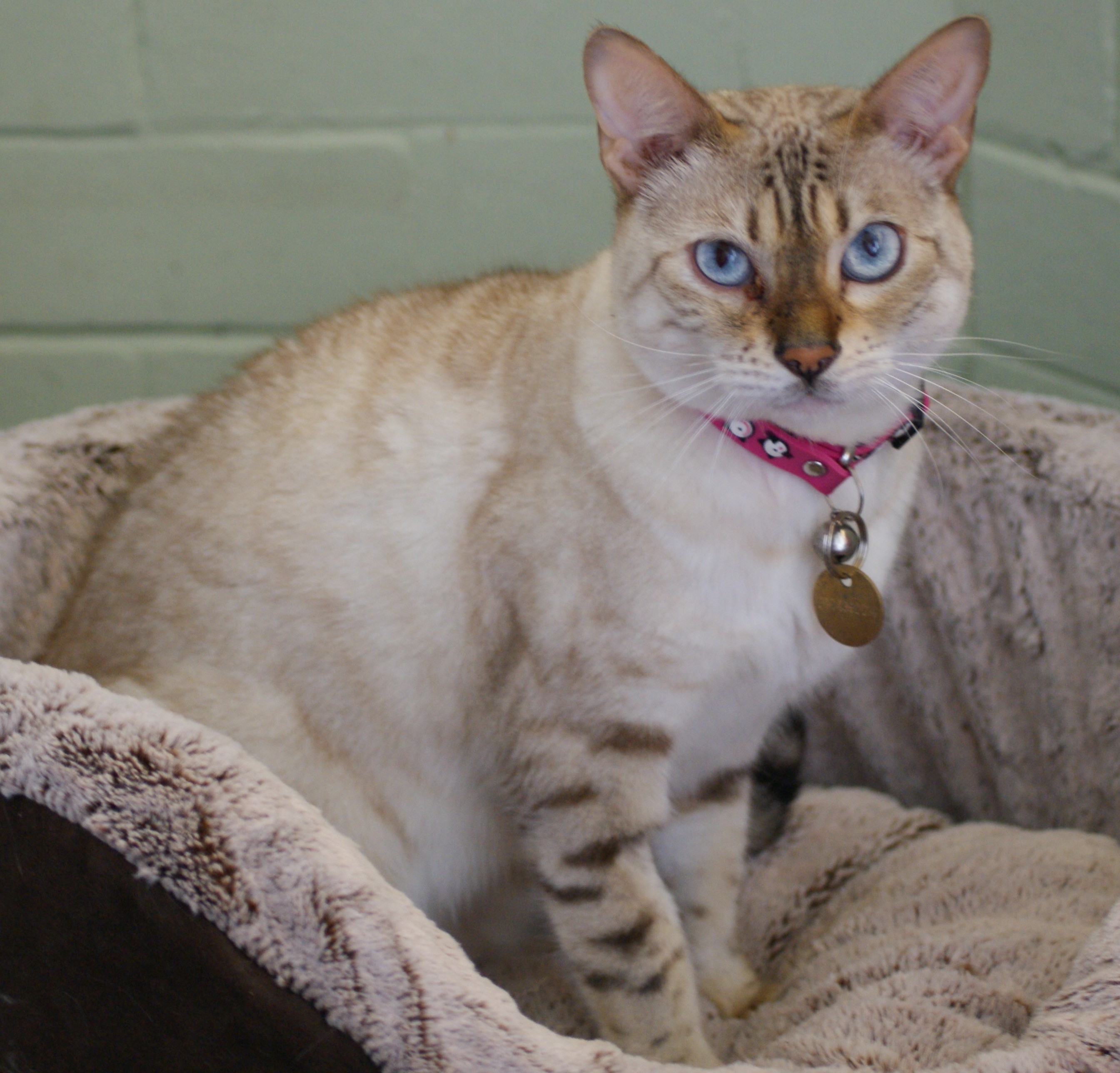 Bridget is a Snow Bengal. She is typical of the breed - quiet, reserved and a cat that enjoys a peaceful lifestyle. Bridget is used to apartment living, and when you first meet her she might seem a little stand-off-ish! However, after she gets to know you, you will see the real Bridget emerge - very loving, affectionate and faithful. Bridget is not keen on men, so a male only household is best for her! She is used to children but quiet, gentle ones! Bridget can be viewed in Double Bay.