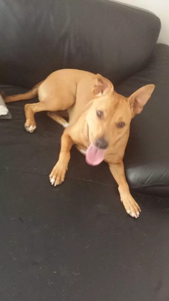 Hi..my name is Brownie. I am around 3 years old...and I am a mixed breed medium sized girl. My pound papers say I am an American Staffy cross...but don't worry about that too much. Just know that I am loyal, loving, tidy and friendly.