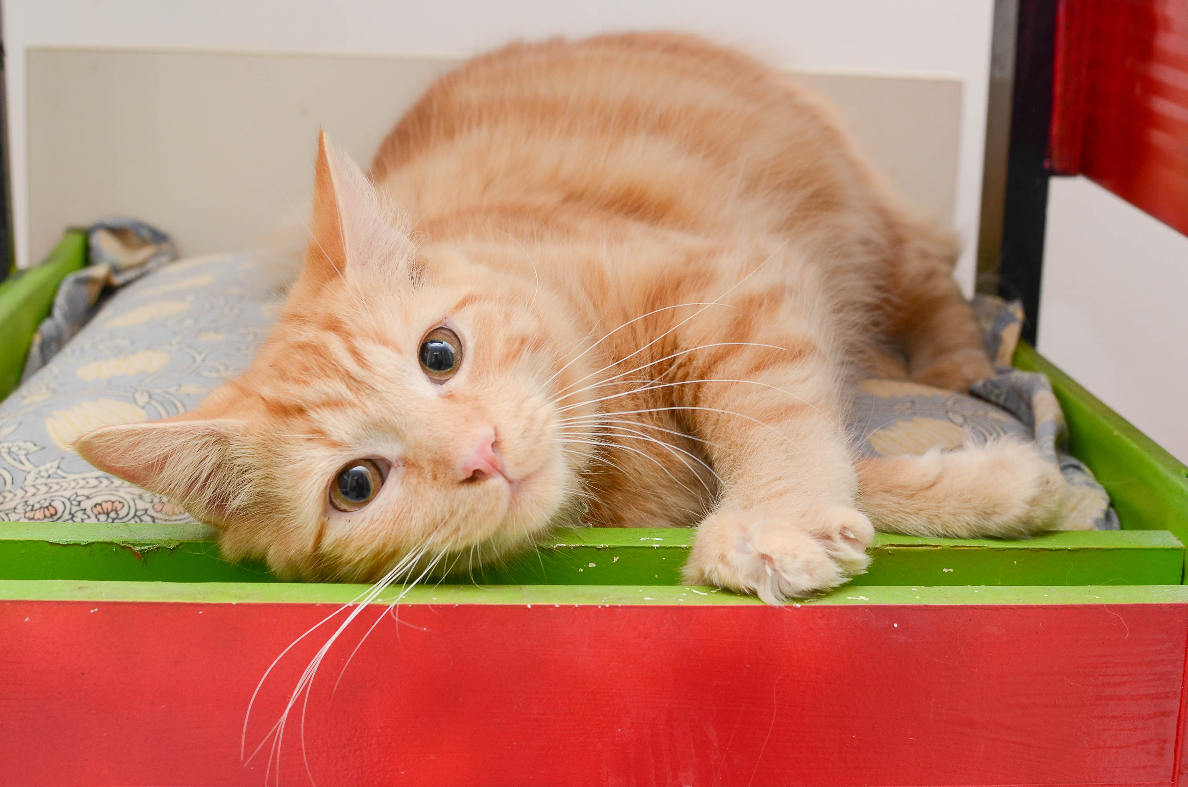 Meet Garfield our big fluffy ginger boy. Despite his size he's still very much a kitten at heart. He's incredibly playful he loves to play with other cats/kittens and also dogs. He has a confident personality and loves to be where the action is. He knows his name and comes when called. He would do well with any family who are looking for an interactive and friendly cat. He also loves smooches and cuddles.
