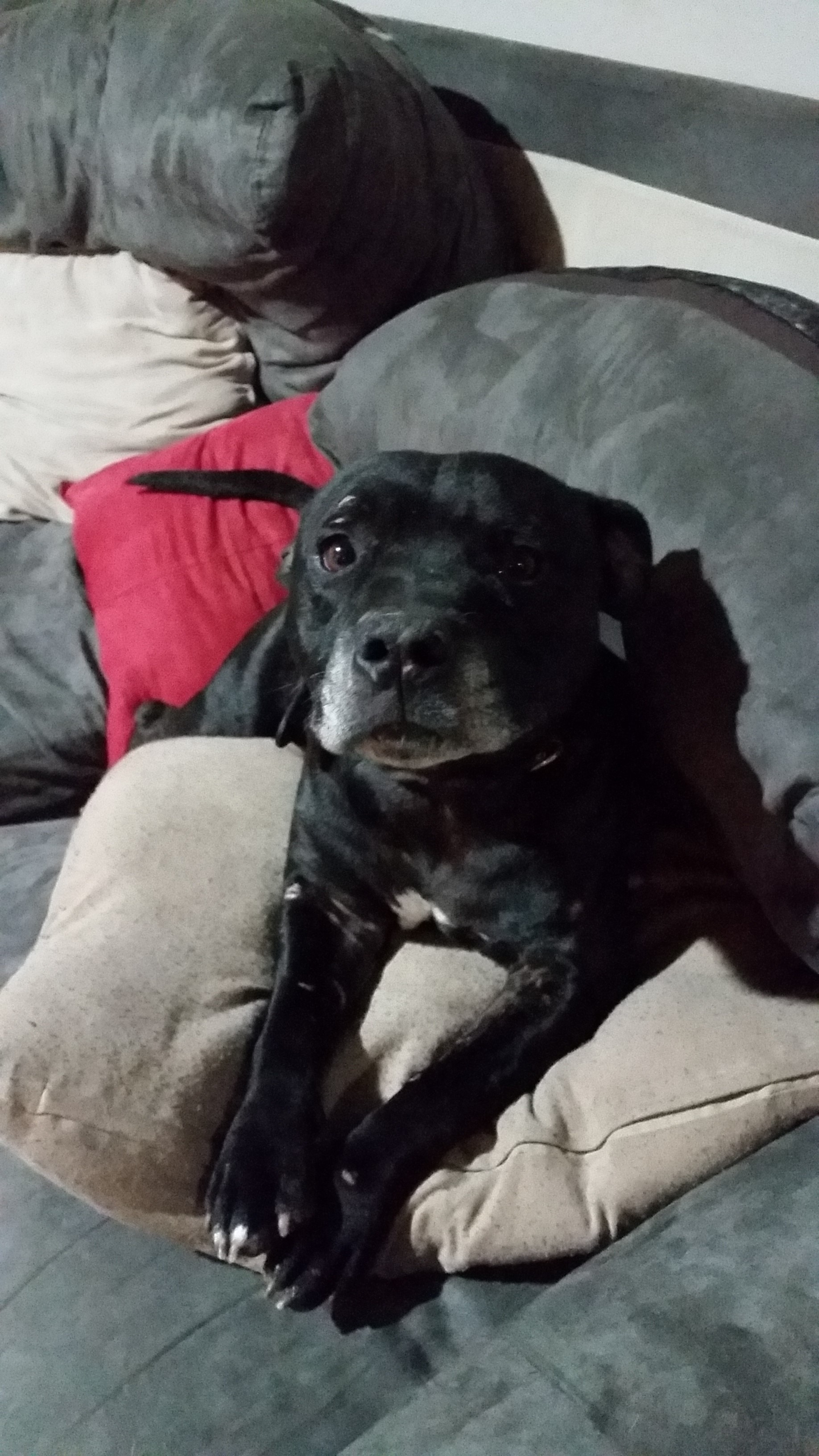 damian is a wonderful boy very calm loves to talk abit very gentle he is awesome to have a round loves a cuddle he is an inside dog he has a few battle scars which isnt his fault he know basic commands and loves to sit and watch tv he is just awesome to have by your side and would make a perfect family member