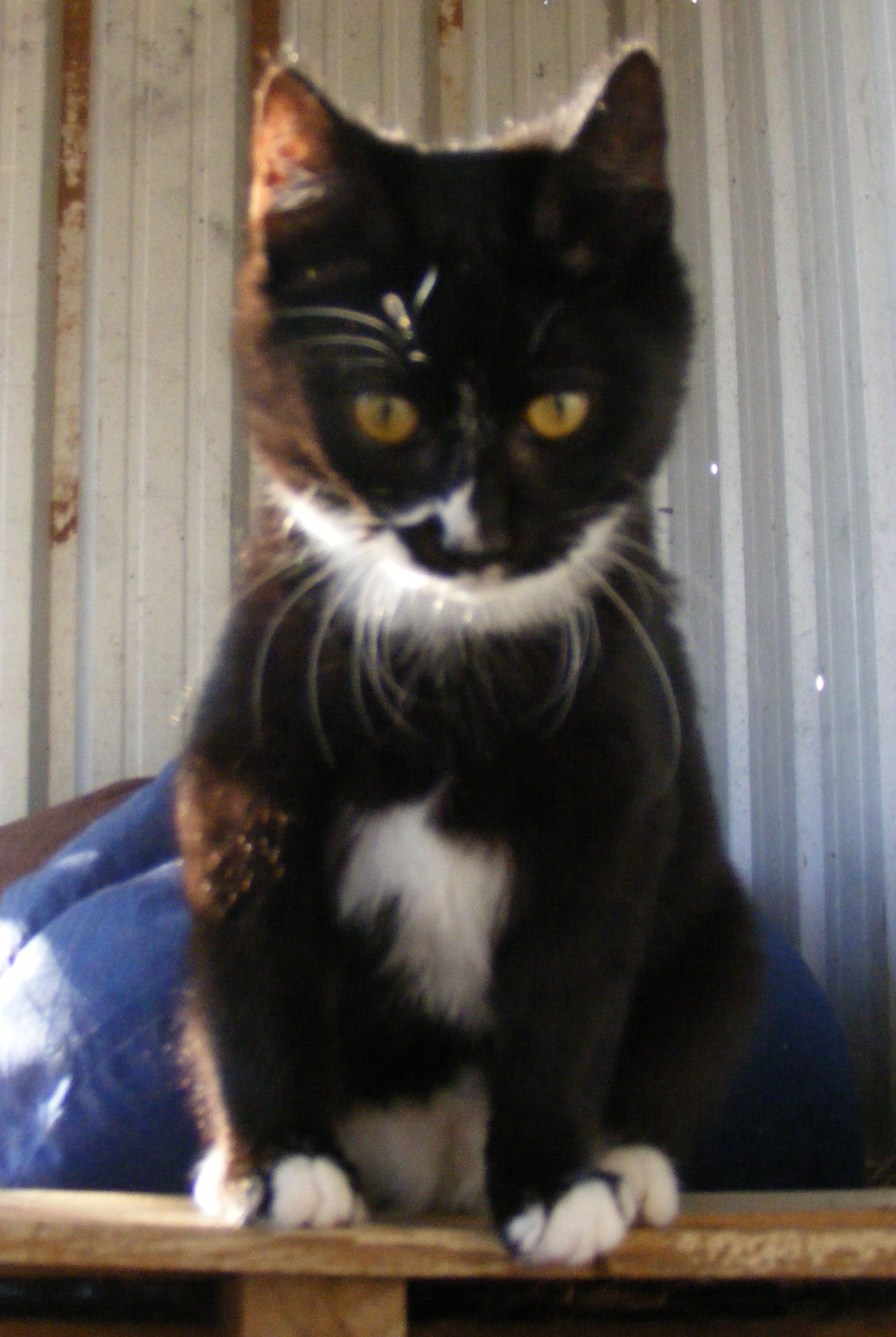 Tux ( black and white ) is a very friendly happy outgoing young guy who likes cuddles and enjoys the company of kids and other cats.