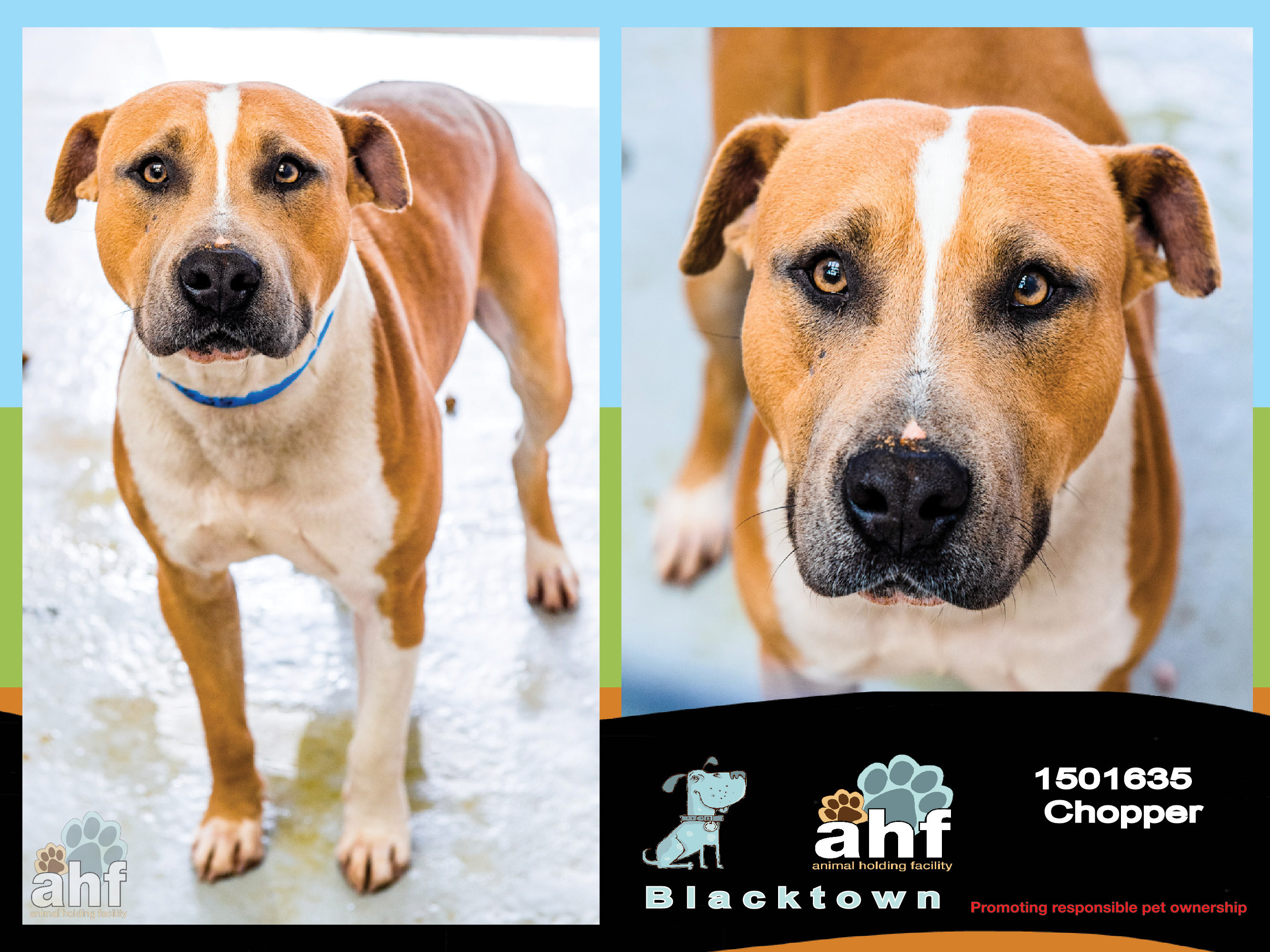 Chopper is available immediately for adoption as he has completed his mandatory holding time.