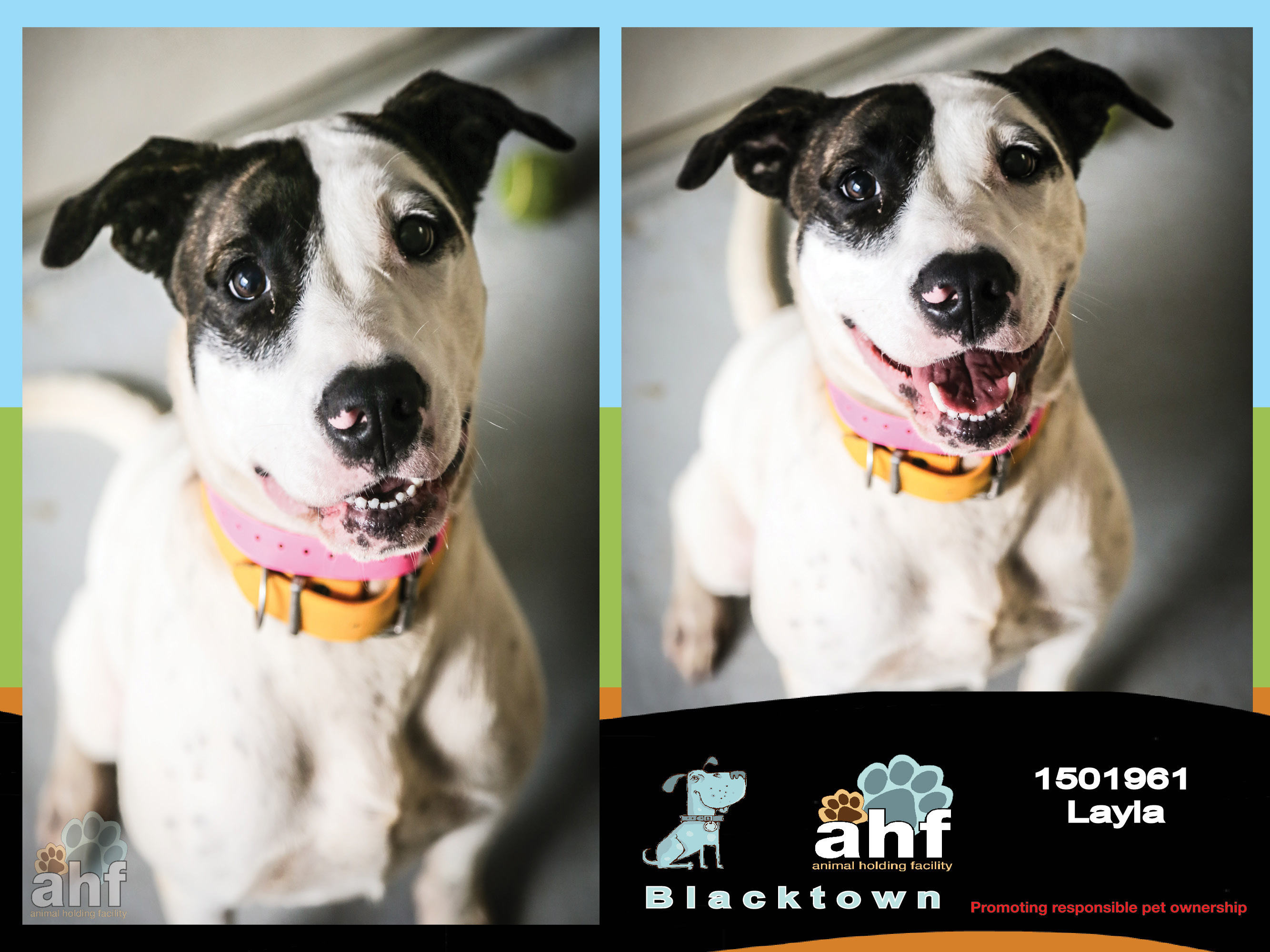Layla is available immediately for adoption as she has completed her mandatory holding time.