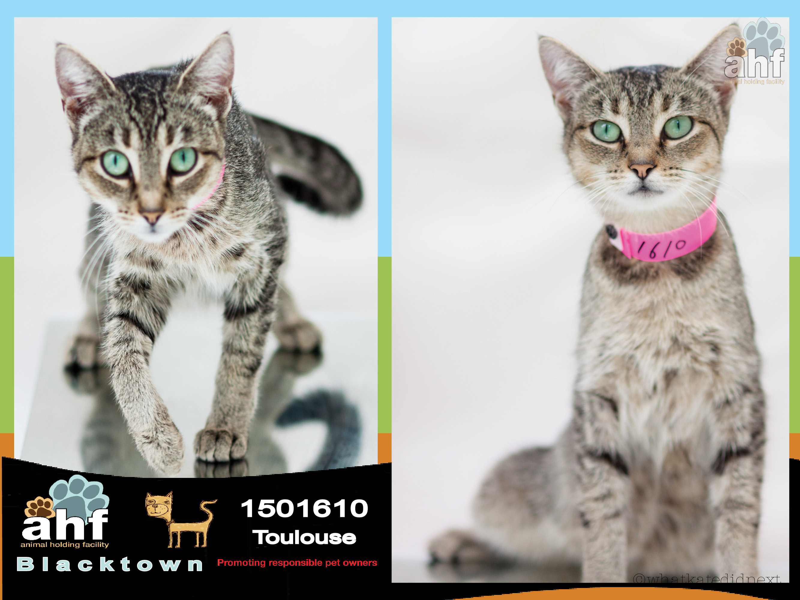 Toulouse is available immediately for adoption as she has completed her mandatory holding time.