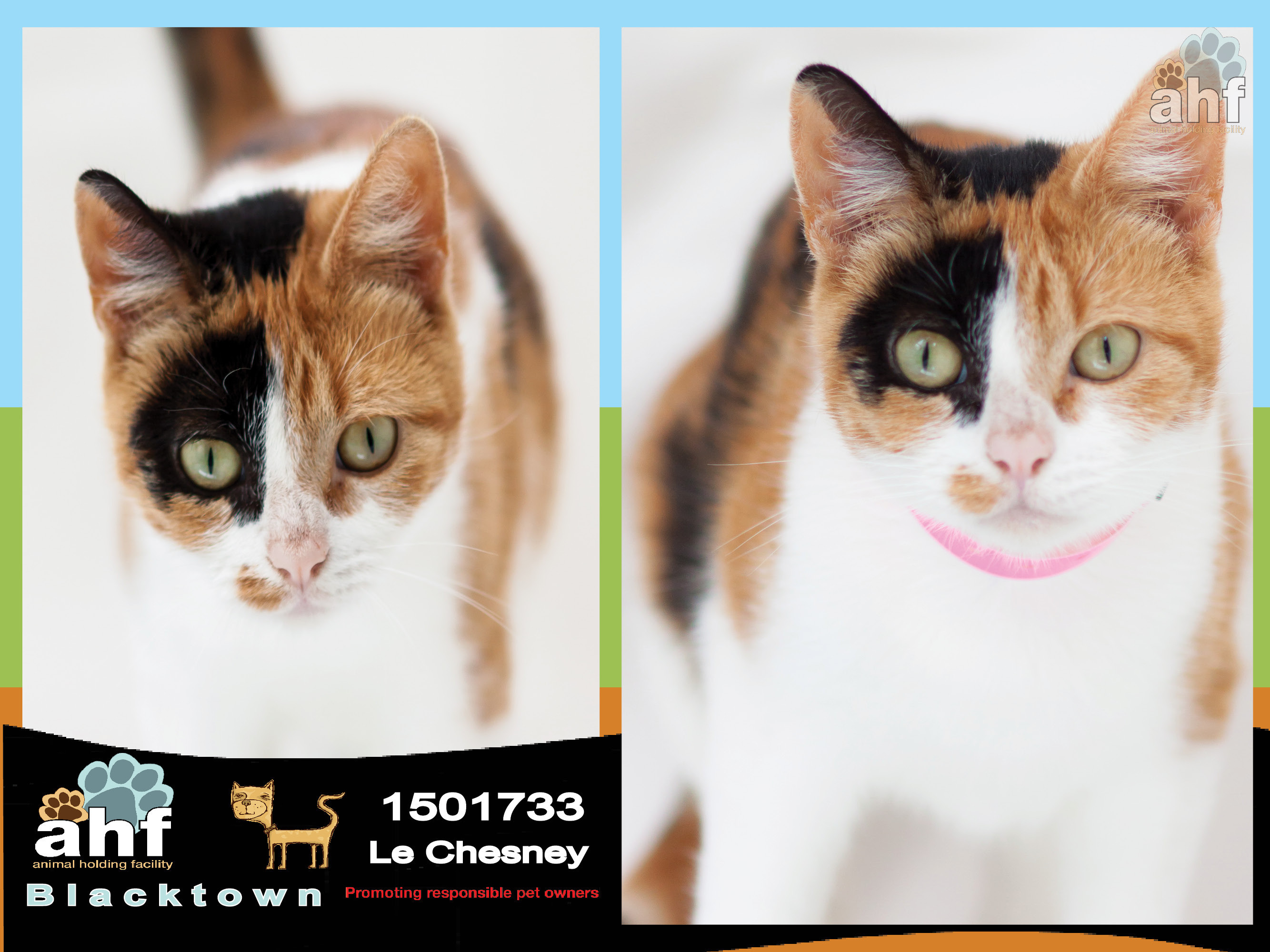 Le Chesney is available immediately for adoption as she has completed her mandatory holding time.