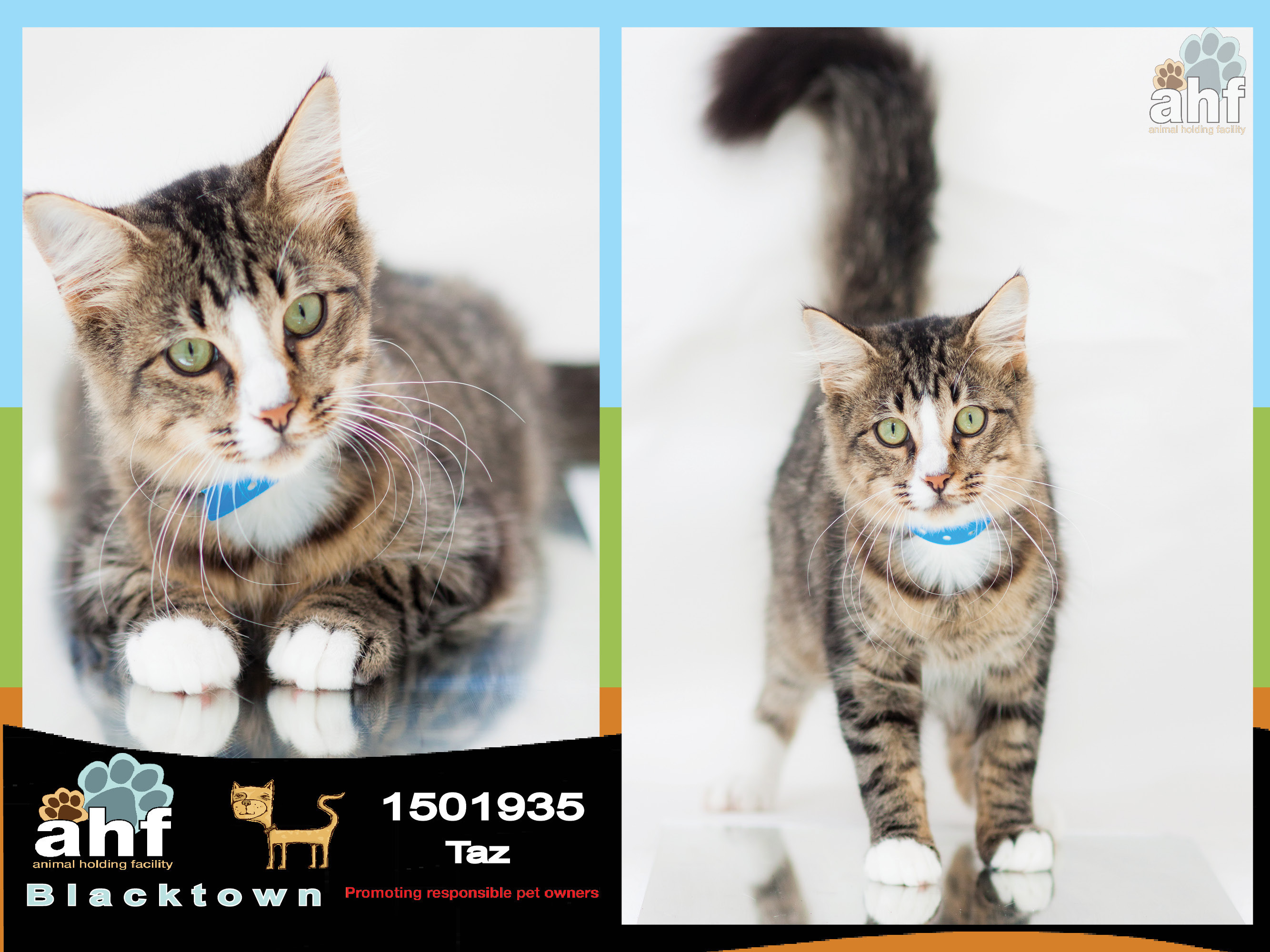 Taz is available immediately for adoption as he has completed his mandatory holding time.
