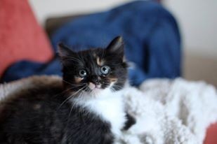 Nyx is a big softie of a kitten. The largest of her siblings, she enjoys a good game of rough and tumble but is happy to settle down for some attention from her carer. She is comfortable with both large and small dogs and is beginning her socialisation with the resident adult cats.