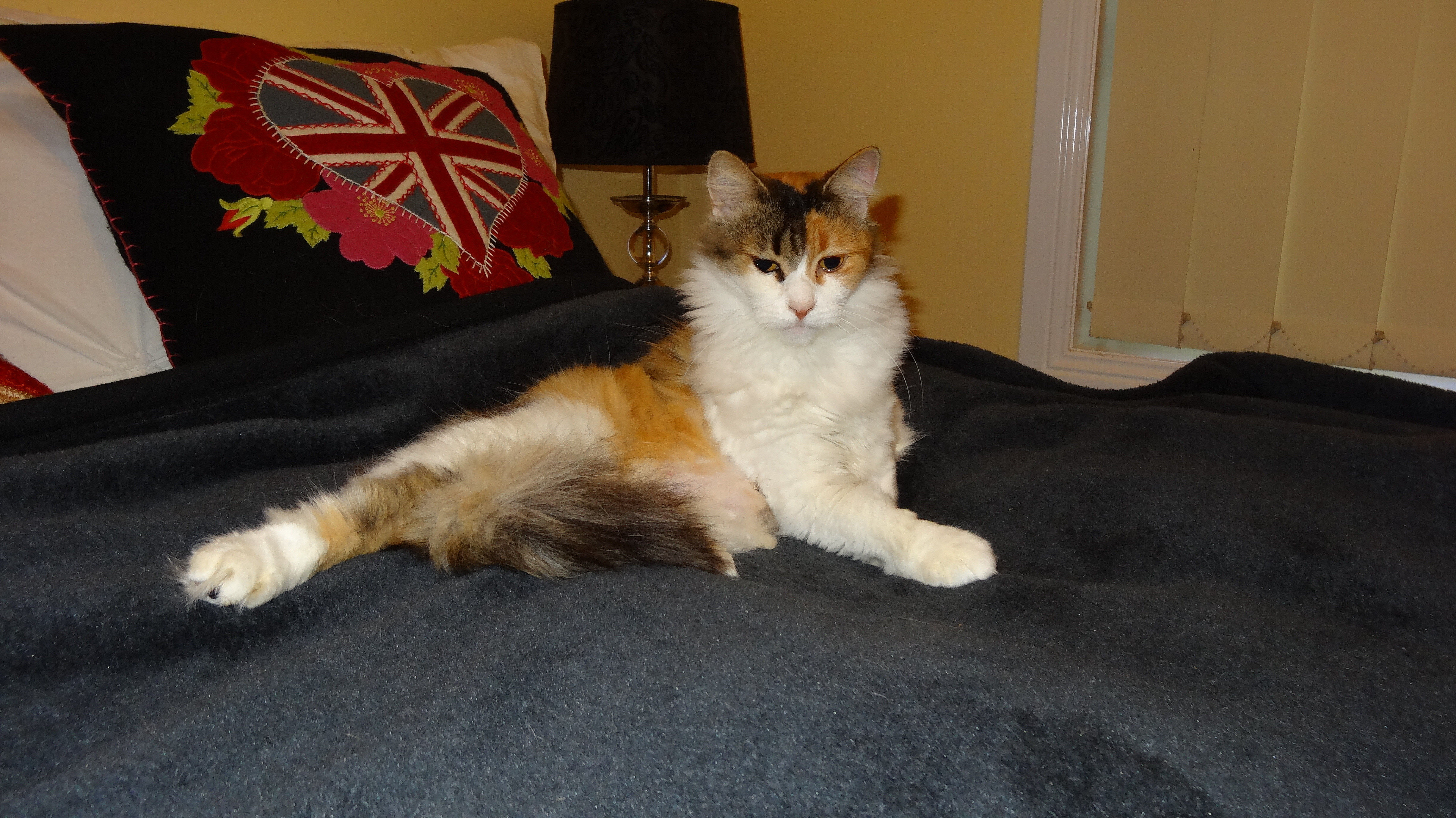 She would be more suited to the quieter home & would make the perfect companion. She will tolerate more placid dogs & other cats, but may hiss if they look in her direction!