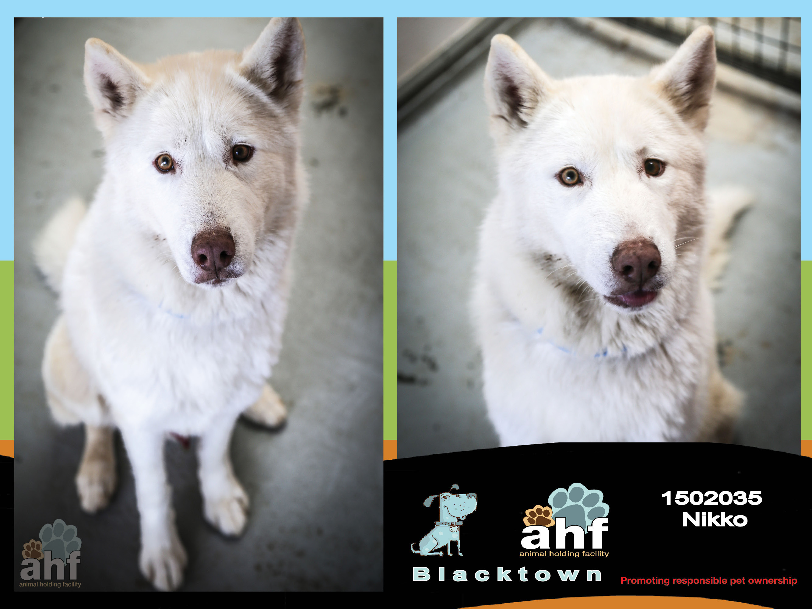 If you already have a dog and wish to adopt Nikko we urge you to visit the facility with your dog for a 'Meet and Greet' to ensure that they are compatible.